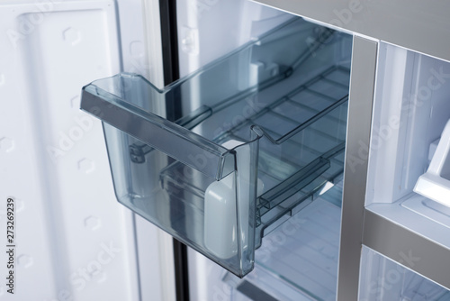 Refrigerator Isolated on White Background. Modern Kitchen and Domestic Major Appliances