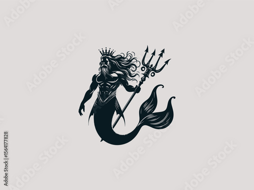 Regal king mermaid holding trident vector logo for premium seafood restaurants or luxury nautical brands