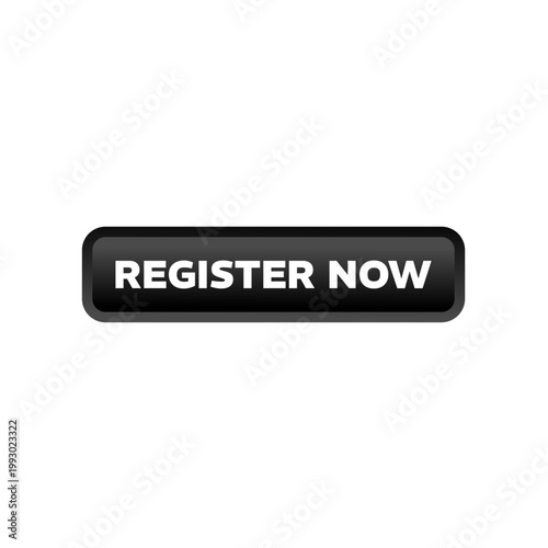 Register now, black rectangular 3d button - vector illustration