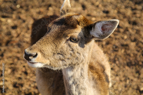 Rehe, Hirsche, Paarhufer in einem Gehege.