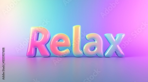 "Relax" text in soft, calming colors against a smooth gradient background, designed to convey peace.