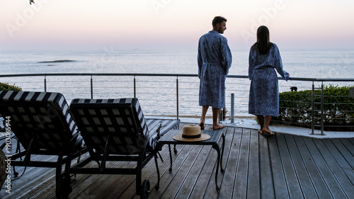 Relaxing couple enjoying the sunset view over the ocean in Cape Towns beautiful landscape