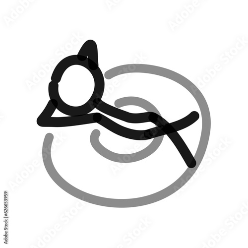 relaxing on a floating inflatable ring, simple line art drawing