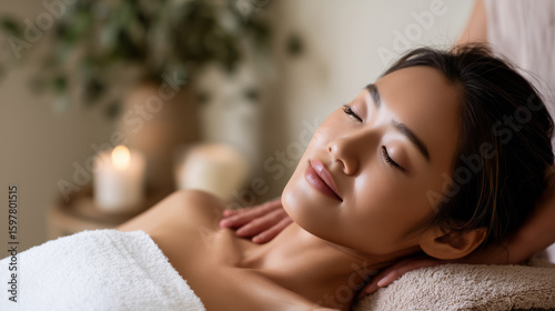 Relaxing Spa Massage with Candles and Lotus Flower