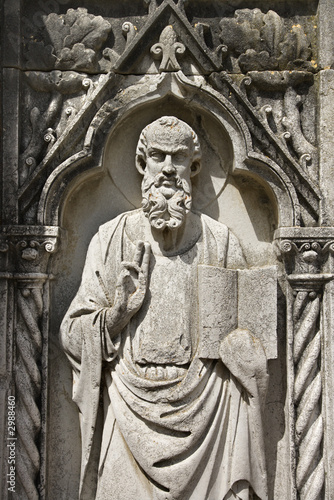 Relief sculpture of male figure.