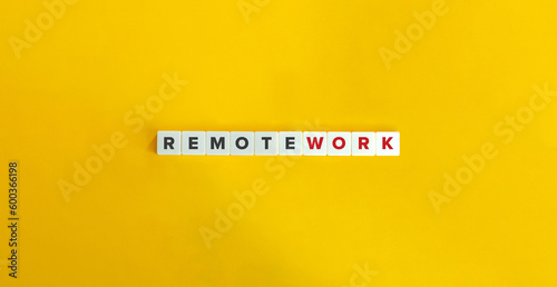Remote Work Banner and Term. Block Letter Tiles on Yellow Background. Minimal Aesthetics.