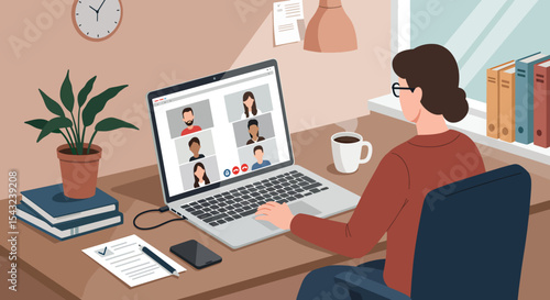 Remote Work Virtual Meeting, Online Collaboration, and Home Office Productivity
