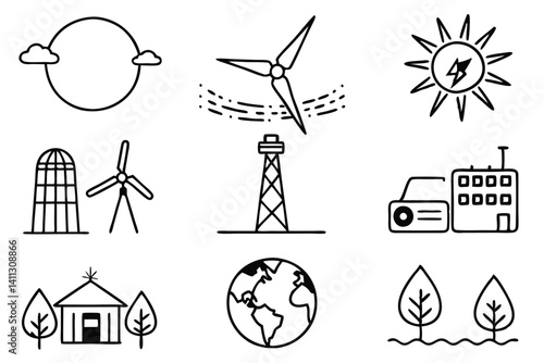 renewable energy im line art solar panel outline