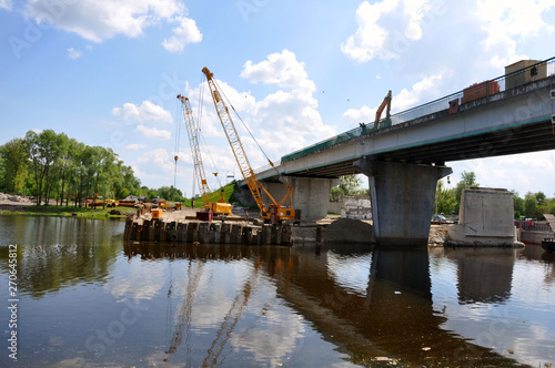 Repair of the bridge over the Pina River in Pinsk. Movement of cars in time