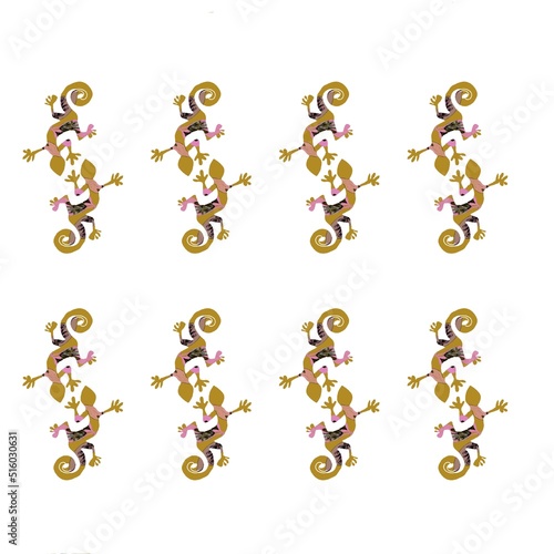 Repeat pattern of lizards on white background