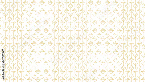 Repeating pattern of geometric shapes with diamonds and triangles in light gold on white background