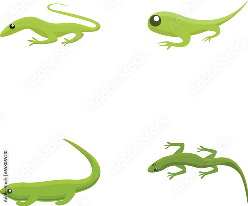 Reptile icons set cartoon vector. Green lizard. Wild nature