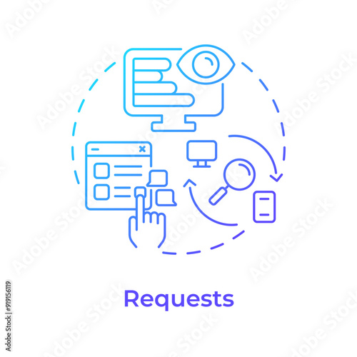 Requests blue gradient concept icon. Network information technology. It infrastructure. Round shape line illustration. Abstract idea. Graphic design. Easy to use in infographic, presentation