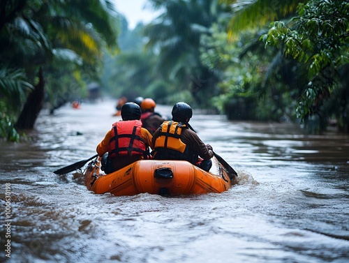 Rescue Efforts in Flooded Jungle Environment