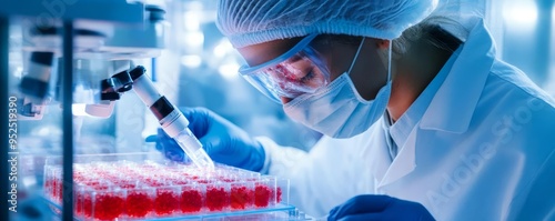 Researcher culturing cells in hypoxic conditions to study stress responses, environment simulation, cell biology