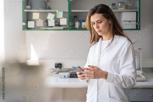 Researcher Using Smartphone In Lab