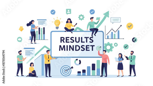 Results Mindset Business Concept with Diverse People and Growth Charts Vector Illustration