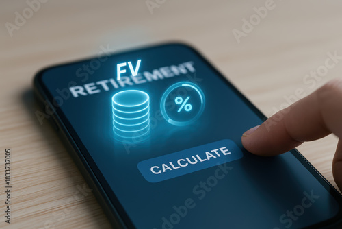 Retirement planning app smartphone calculates future value for life goals with insurance and healthcare options to secure time and financial