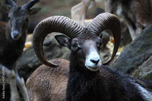 Retrato de un macho de muflón europeo (Ovis orientalis)