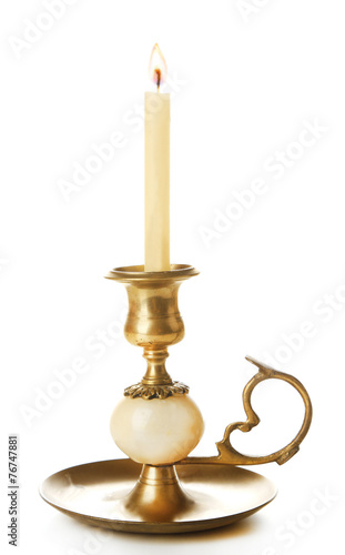 Retro candlestick with candle, isolated on white