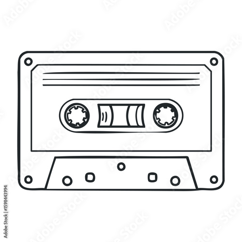 Retro cassette tape line drawing - classic audio vintage music design. Vector illustration