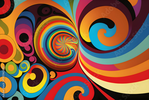 Retro color cheme abstract geometry background. Psychedelic vintage. Generative AI