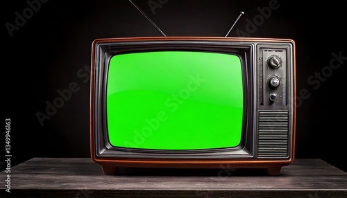 Retro CRT TV with a Blank Green Screen Effect Against a Black Backdrop