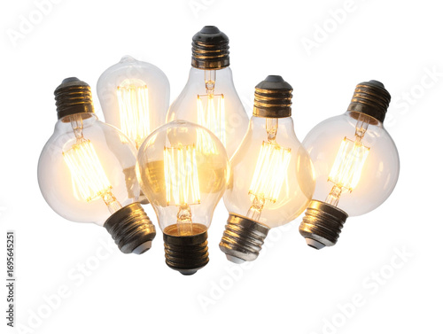 Retro Edison-Style Light Bulb Cluster with Warm Glow, Isolated PNG