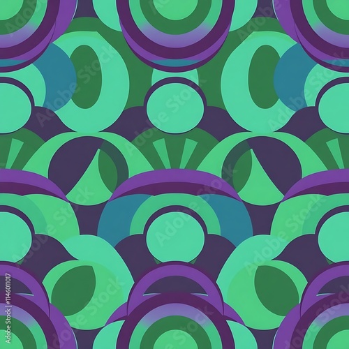 Retro Green and Purple Abstract Circles Pattern