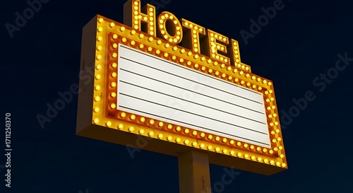 Retro Hotel Marquee Sign with Blank Board at Night