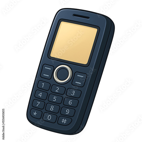 Retro mobile phone with numeric keypad and screen isolated on transparent background