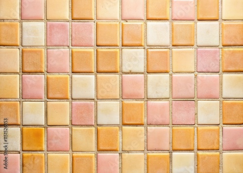 Retro peach, pink, and yellow vintage tiles. Square texture, perfect for a nostalgic background.