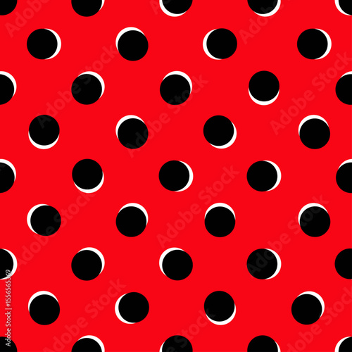 Retro Red Polkadot Seamless Pattern – Bold Black & White Shadow Dots Design