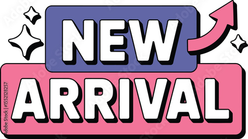 Retro Styled New Arrival Sign with Stars and an Arrow Appealing to a Nostalgic Aesthetic in Design