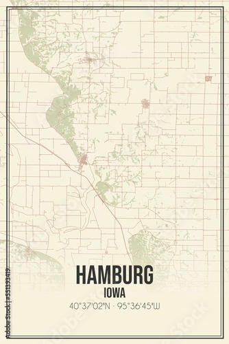 Retro US city map of Hamburg, Iowa. Vintage street map.