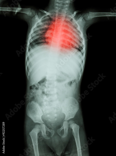Rheumatic heart disease , Valvular heart disease ( Film x-ray body of child with red area at heart ) ( Medical , Science and Healthcare concept )