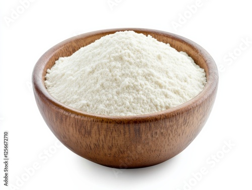 Rice flour in a bowl. Featuring a bowl of white rice flour. Highlighting the versatility and use in baking and cooking. Ideal for culinary and kitchen visuals.