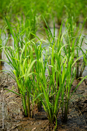 Rice growing in rice fields