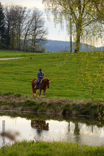 Ride on a wildeside. Frau auf Westernpferd im Abendlicht