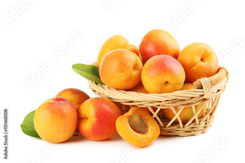 Ripe apricots fruit isolated on a white