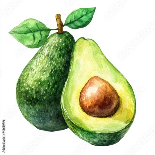 Ripe Avocado Watercolor Illustration - Fully Mature Fruit in Warm Tones on White Background