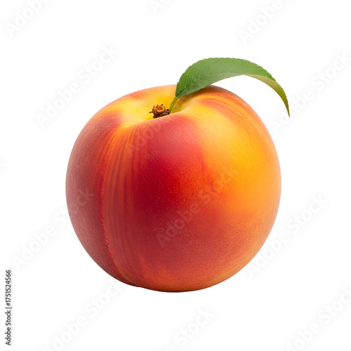 Ripe peach with leaf isolated on transparent background