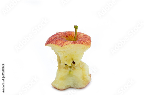 Ripe red apple core after Bitten on white background