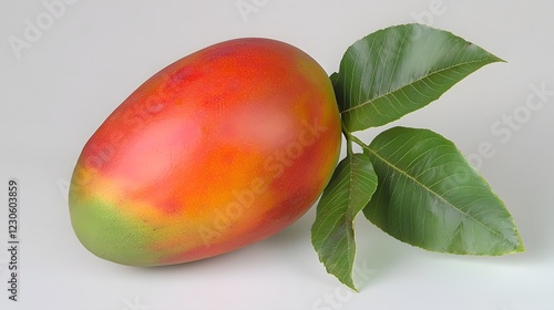 Ripe Red Mango with Green Leaves Studio Shot