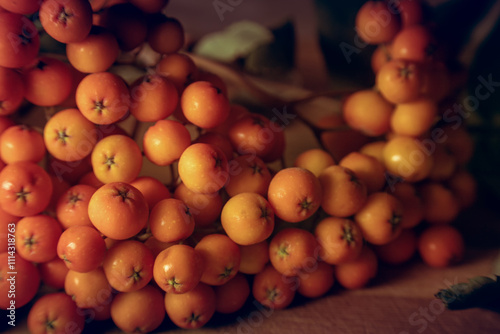 Ripe rowan berries in close-up.