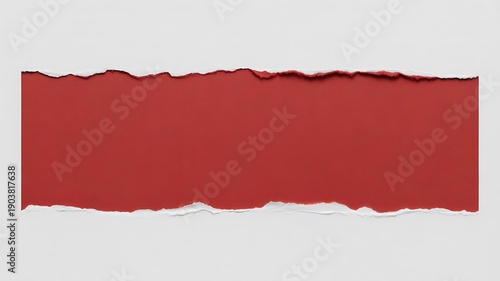 Ripped White Paper Edges Revealing Red Background - Abstract Textural Frame with Copy Space