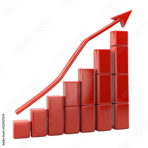Rising bars show data growth over time, indicating success, isolated on a transparent background. PNG