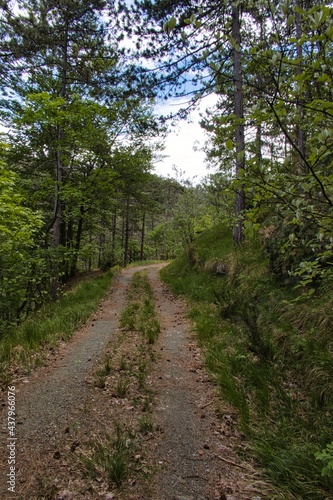road in the woods with dense vegetation, in the Ligurian hinterland at Sassello