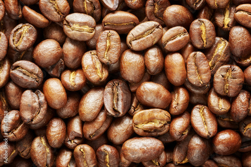 Roasted coffee beans, natural food background.