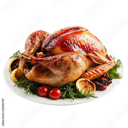Roasted turkey on the plate isolated on transparency